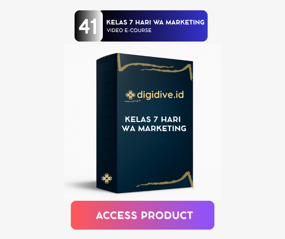 KELAS 7 HARI WA MARKETING adalah program pembelajaran digital berupa 7 video e-course (DAY 1–DAY 7) yang dirancang untuk membantu kamu menguasai strategi pemasaran efektif melalui WhatsApp Marketing. Setiap hari, kamu akan mempelajari langkah-langkah praktis mulai dari basic whatsapp marketing, penggunaannya, sampai optimasi list building & selling menggunakan WbsPro. Cocok untuk pemula, pebisnis online, maupun pemilik brand.